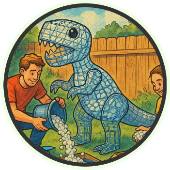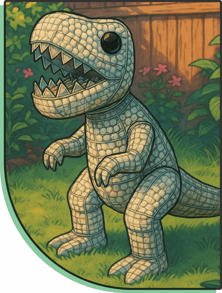 Miután lett egy saját dínónk, a macska órákra eltűnt, a postás majdnem leesett a bicikliről és szomszéd Marika néni is gyakrabban kukucskált át a kerítés felett. Azt ugyan nehéz eldönteni, hogy egy T-Rex vagy Marika néni a rémisztőbb, de szerencsére a mi kerti dínónkkal mindannyian gyorsan megbarátkoztak. Imádjuk!